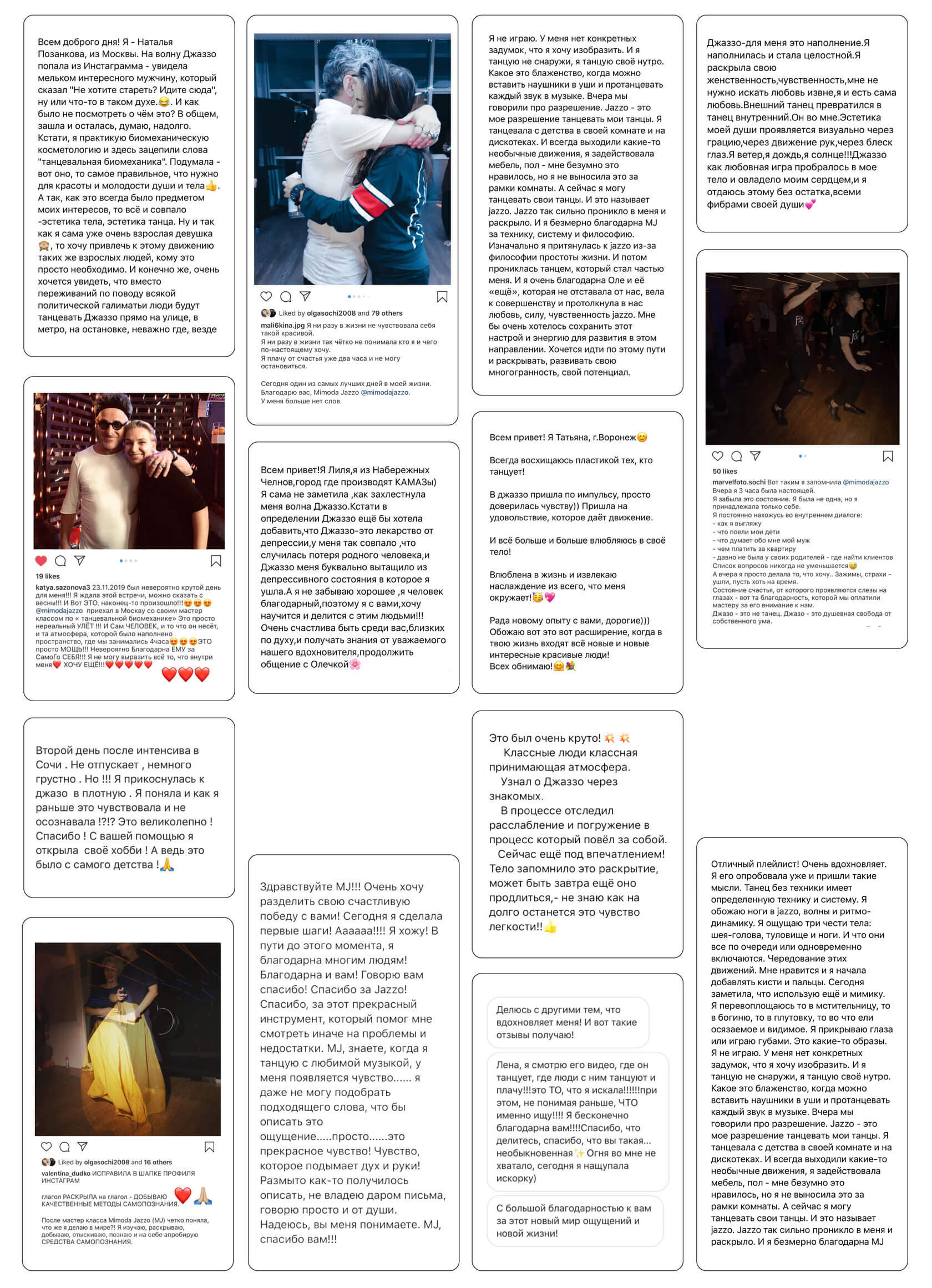 К каждому обучающему уроку добавлено по два домашних задания. Они состоят из вопросов, которые помогают отслеживать ваш прогресс, танцевальных видео наших учеников, а также подборки танцевальной музыки для самостоятельных занятий. В базовом формате с поддержкой и в премиум формате кураторы дают обратную связь по каждому домашнему заданию, чтобы направлять вас в правильное русло и помогать поддерживать мотивацию.